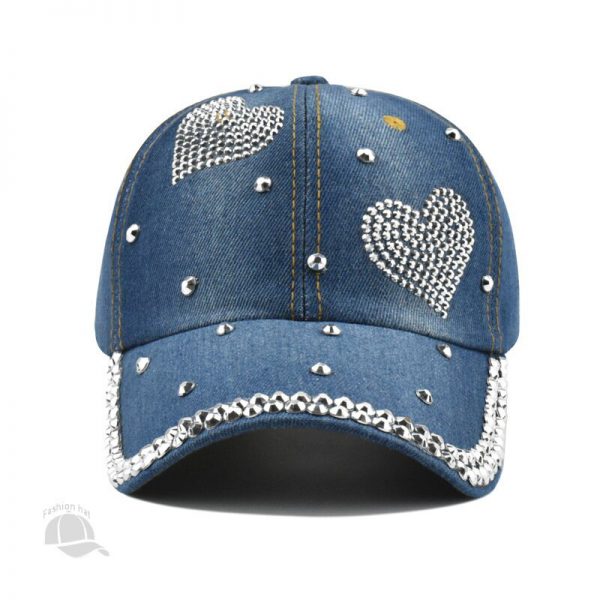 New High Quality Cool Denim Baseball Cap Rhinestone Hip Hop Adjustable Snapback Hat Red For Women