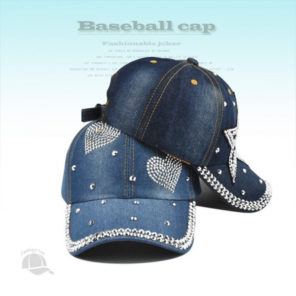 New High Quality Cool Denim Baseball Cap Rhinestone Hip Hop Adjustable Snapback Hat Red For Women