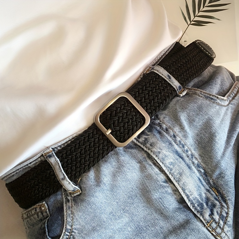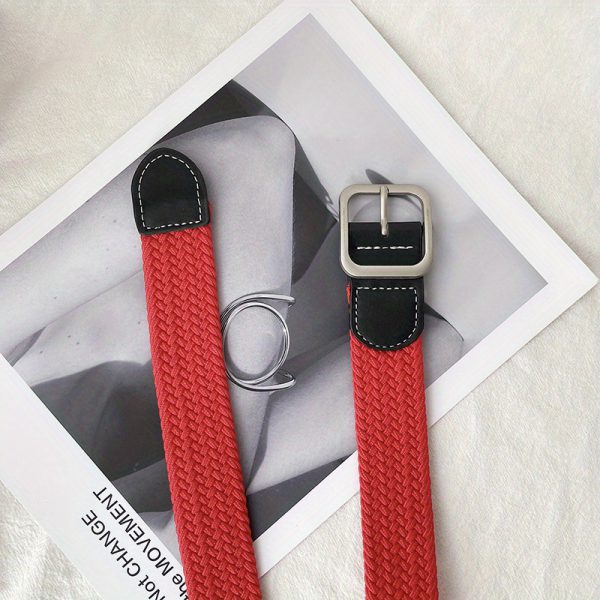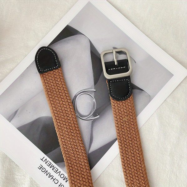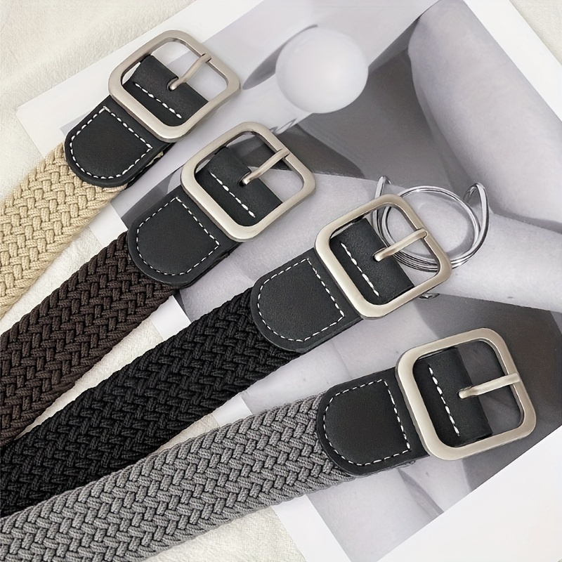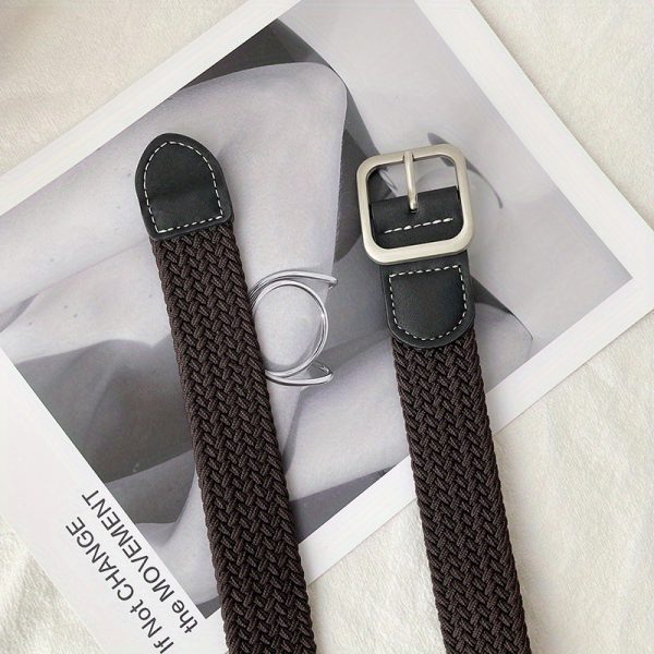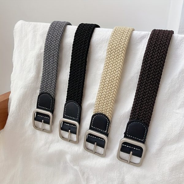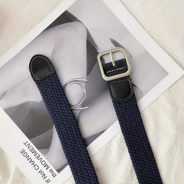 1pc Men’s And Women’s Elastic Belt Woven Casual Square Simple Canvas Belt