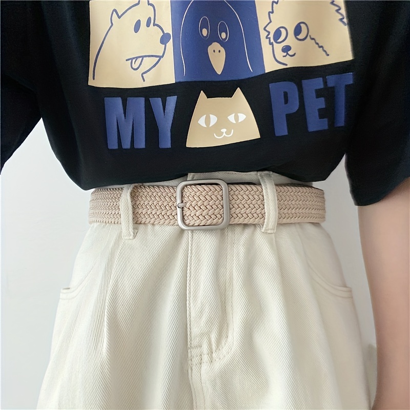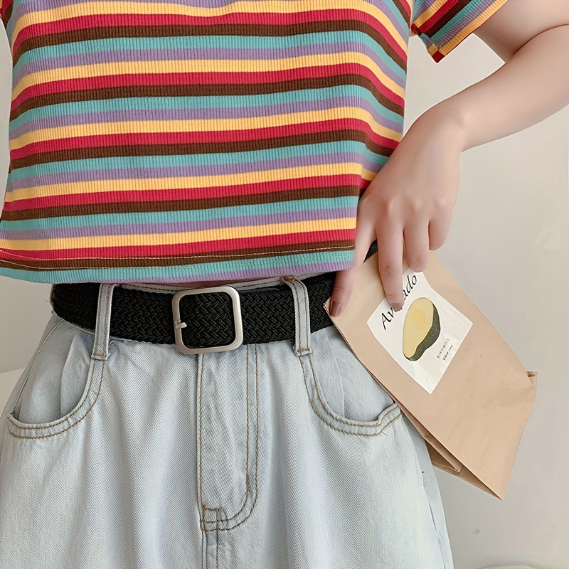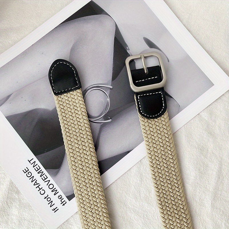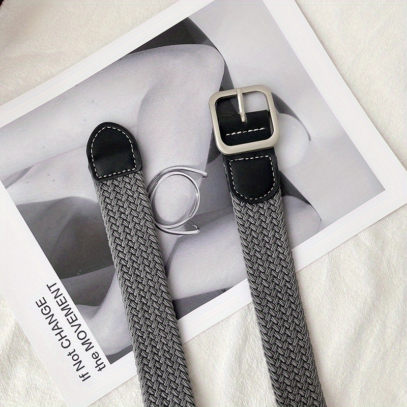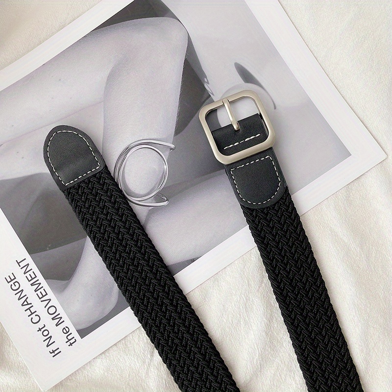 1pc Men’s And Women’s Elastic Belt Woven Casual Square Simple Canvas Belt