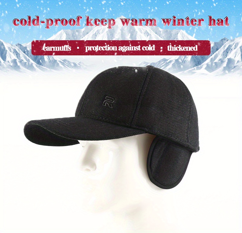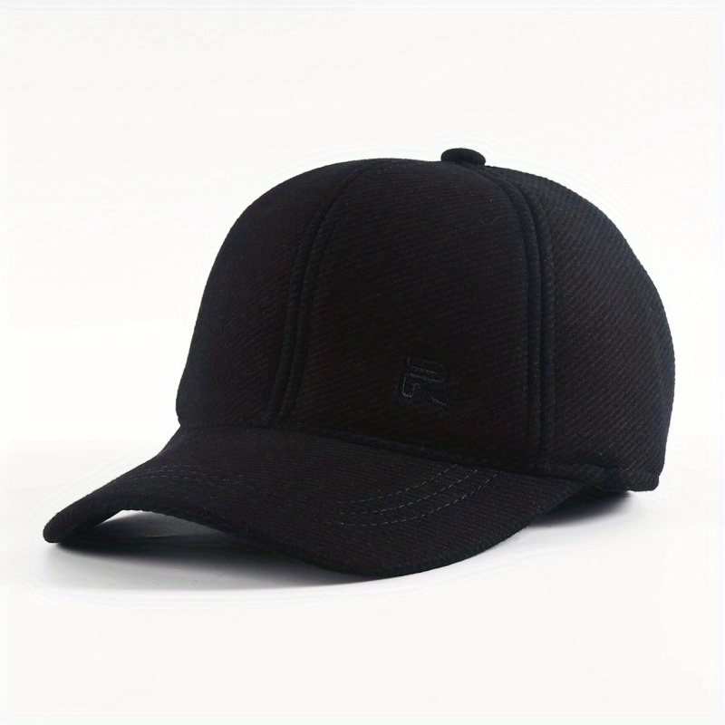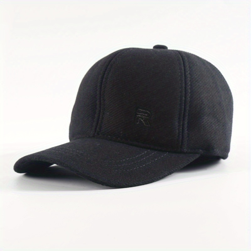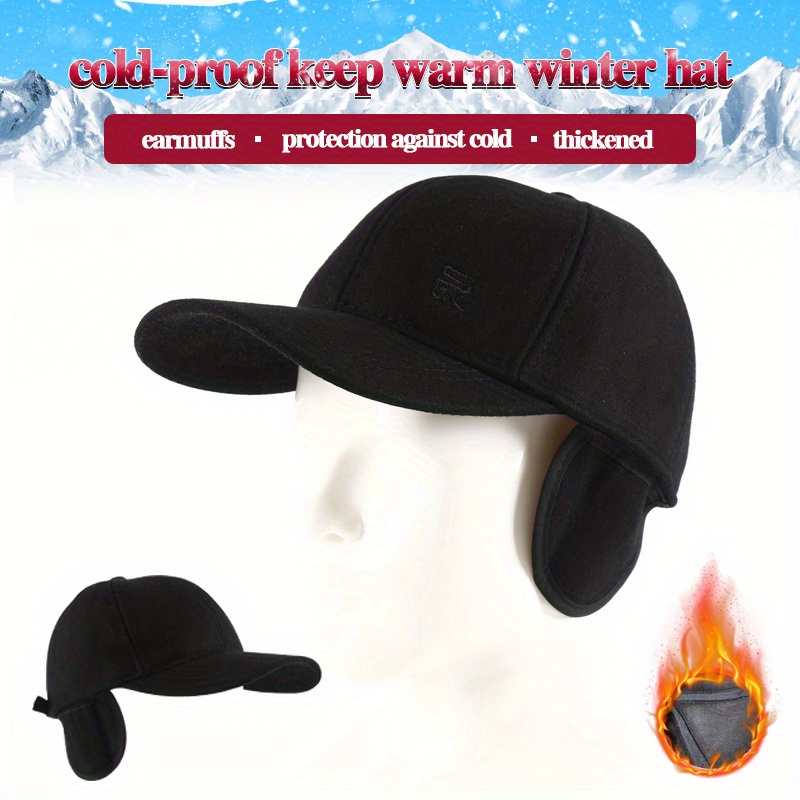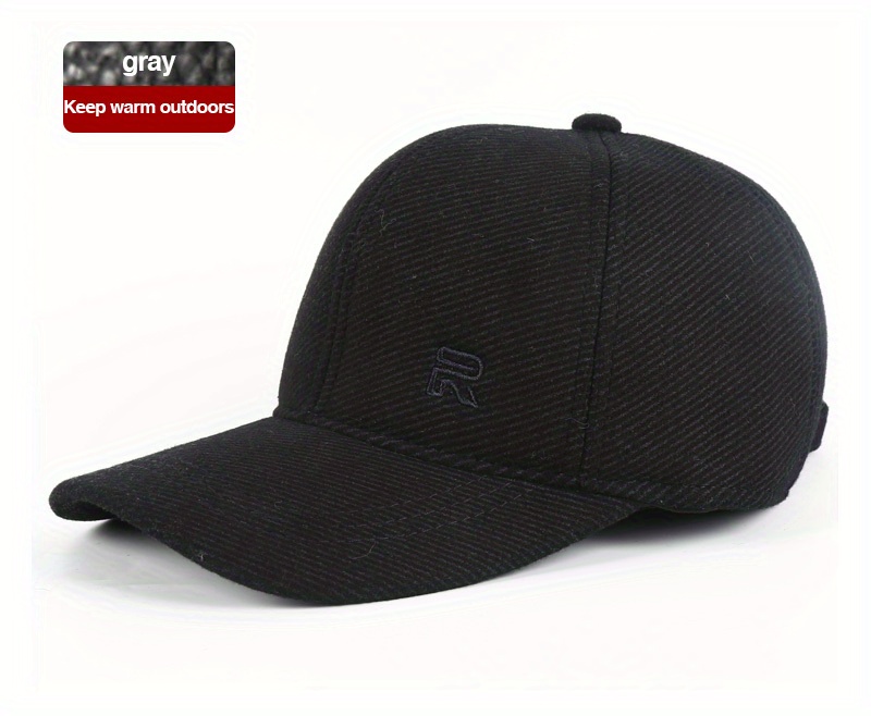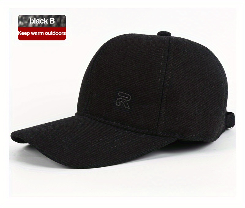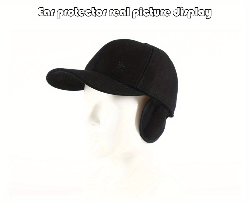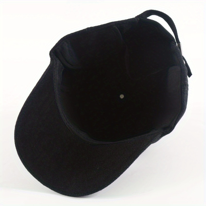 1pc Unisex Plus Velvet Woolen Hard Top Baseball Cap With Ear Protection For Outdoor Sport