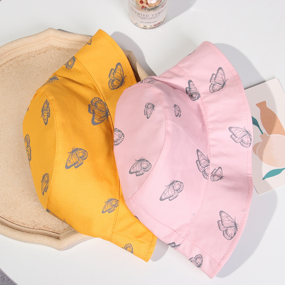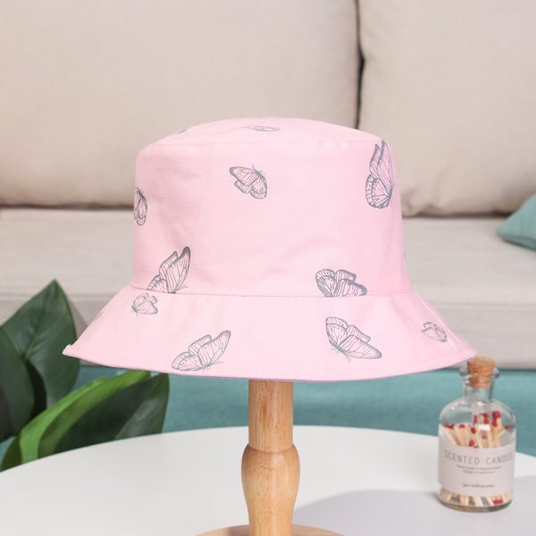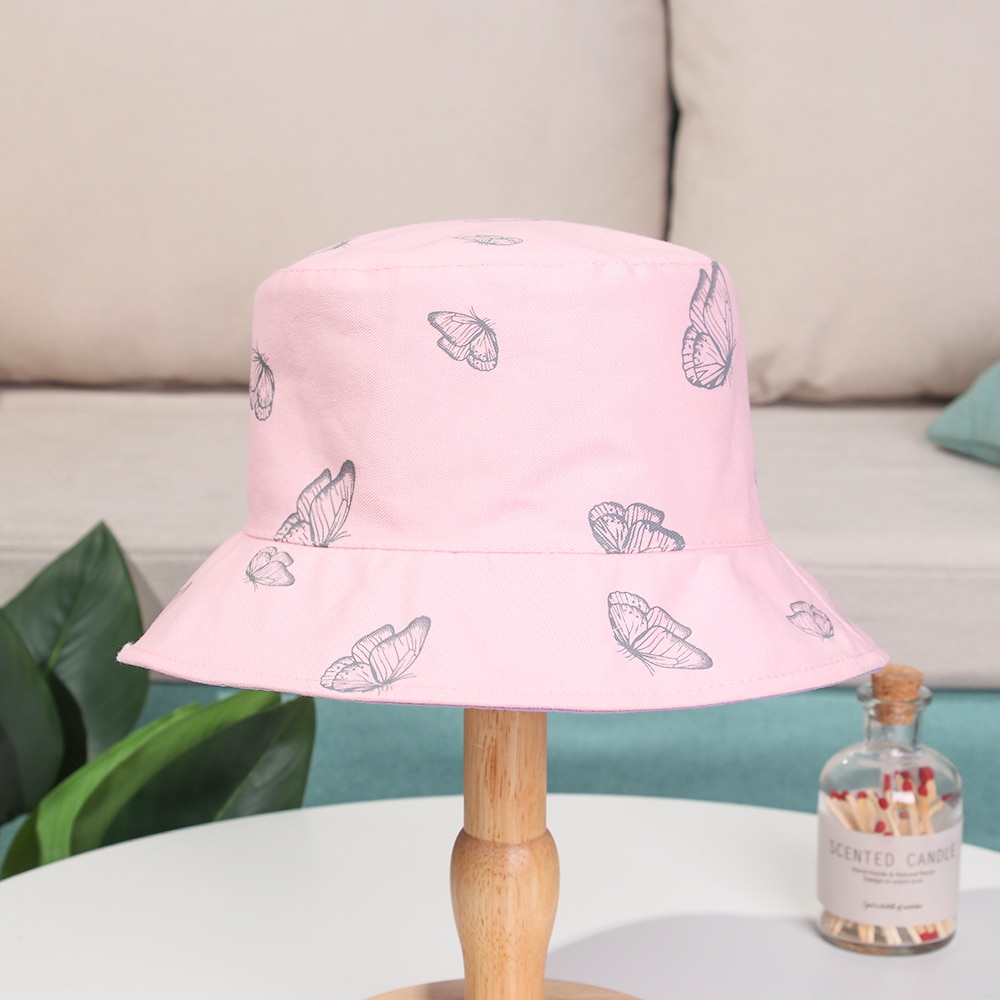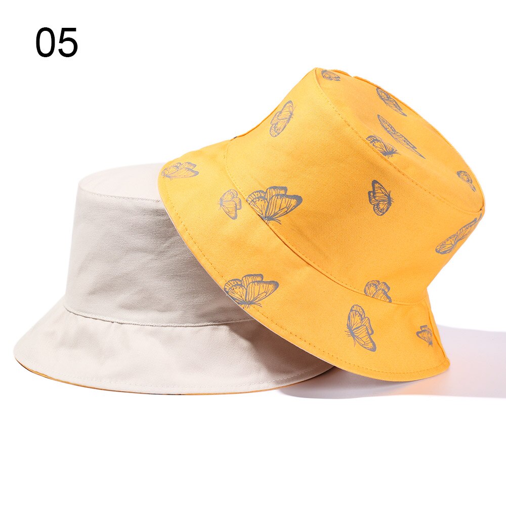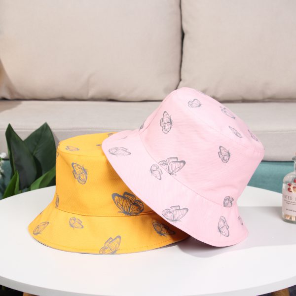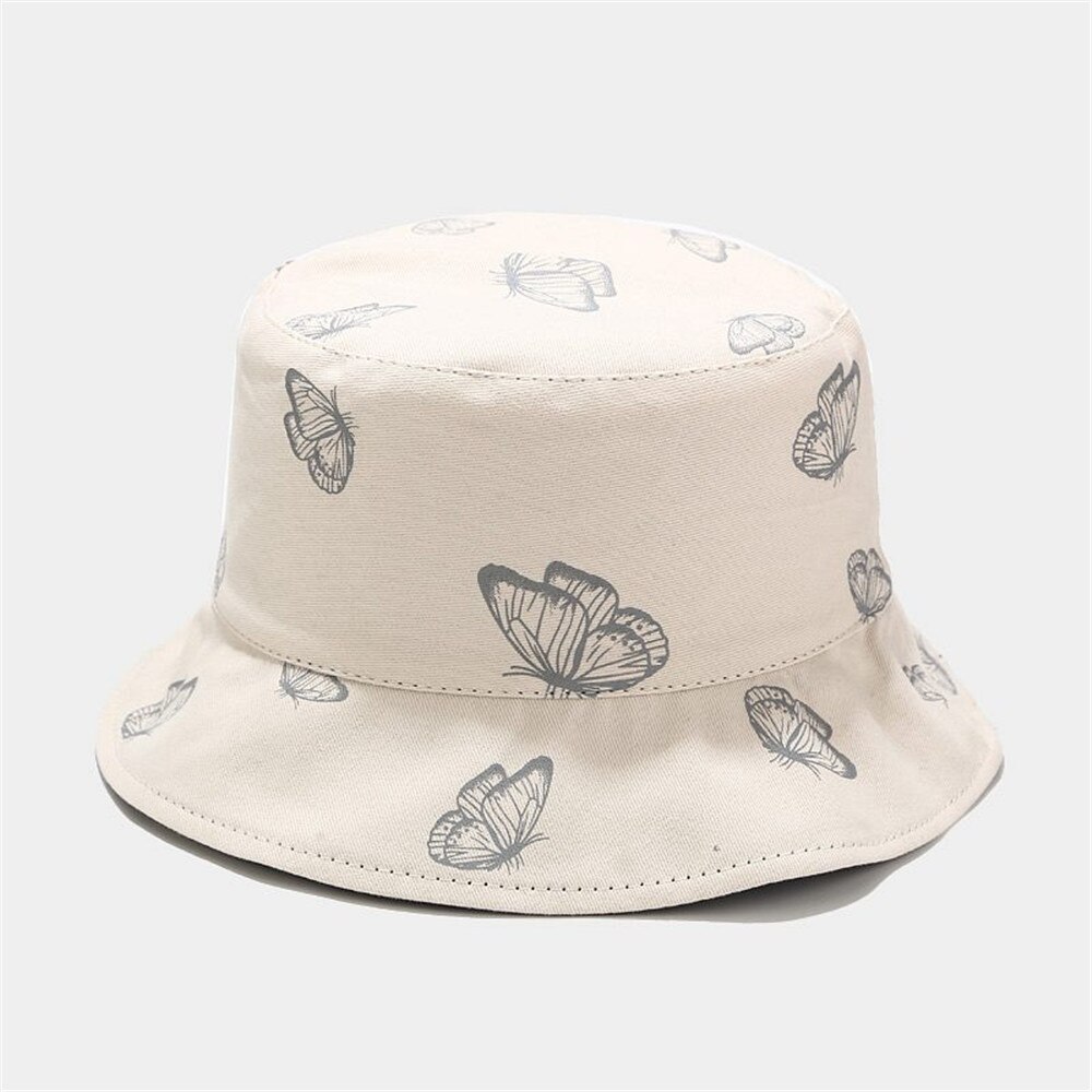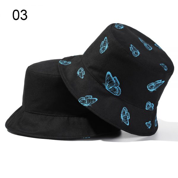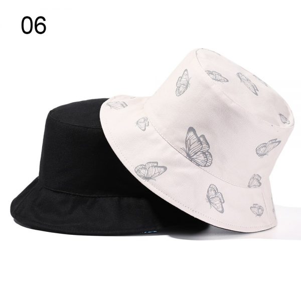 2024 New Black Butterfly Double-sided Bucket Hat Cotton Foldable Wide Brim Fisherman Cap Women Men Casual Outdoor Sunscreen Hat