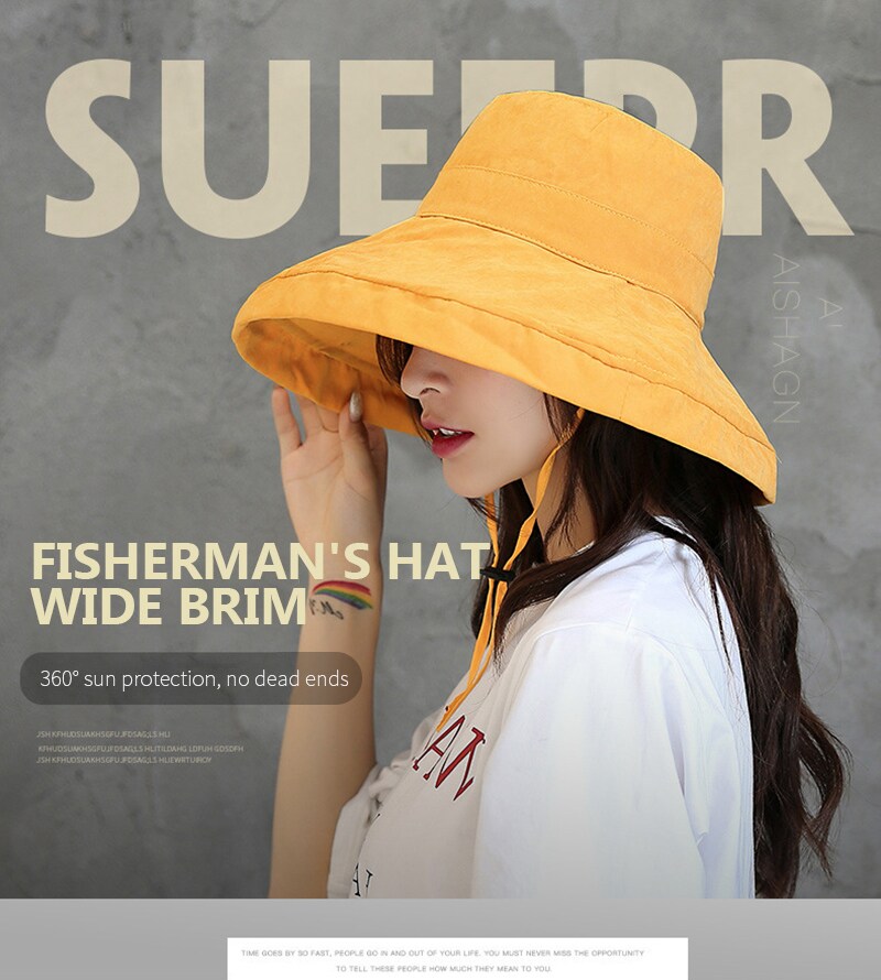 2024 New Summer Big Brim Sun Hat For Female Seaside Sun Protection Uv Cap Japanese Wild Fisherman Hat Big Eaves Peach Skin