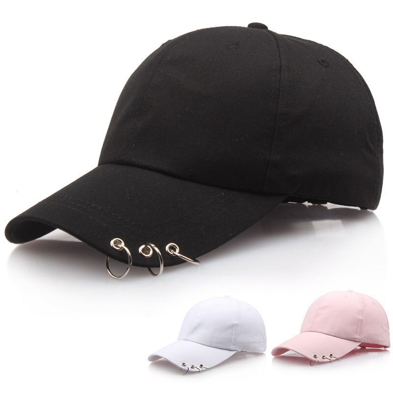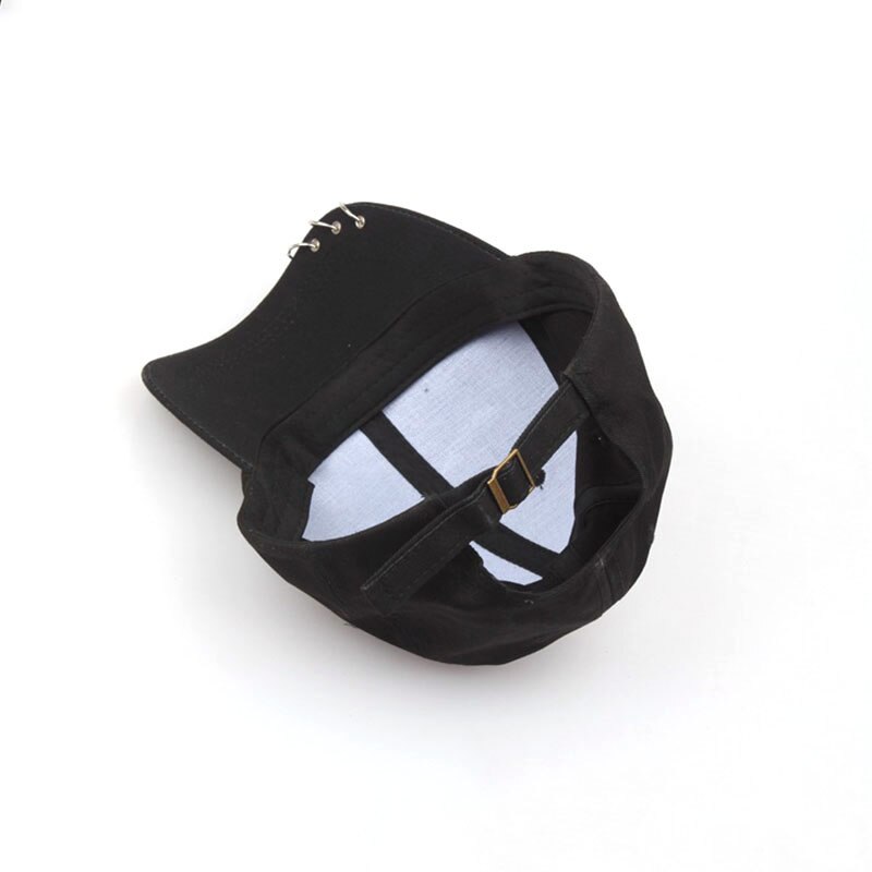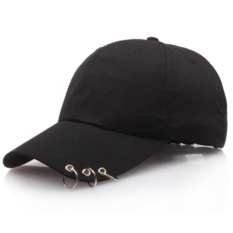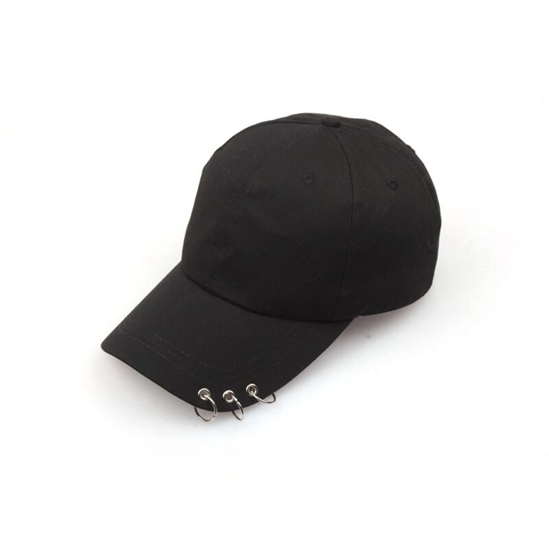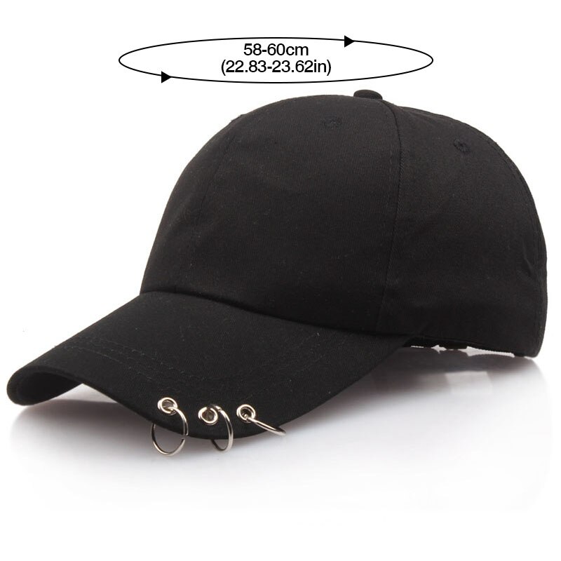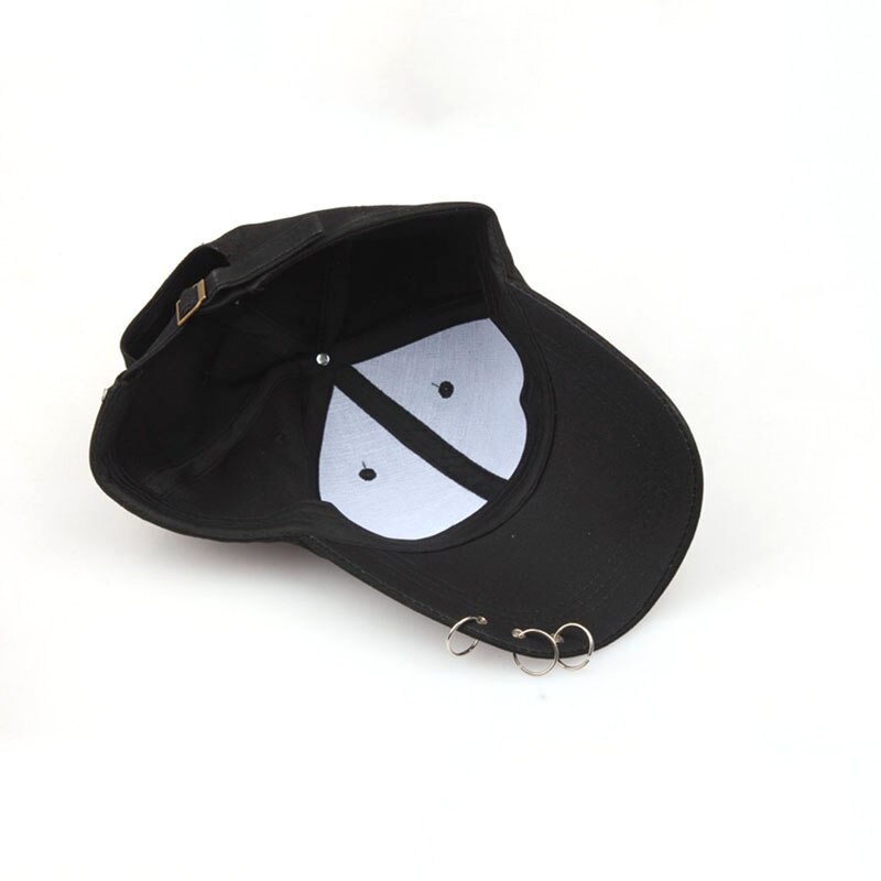 Black Casual Baseball Cap Punk Metal Ring Men Women Snapback Hat Adjustable Outdoor Unisex Hip Hop Caps