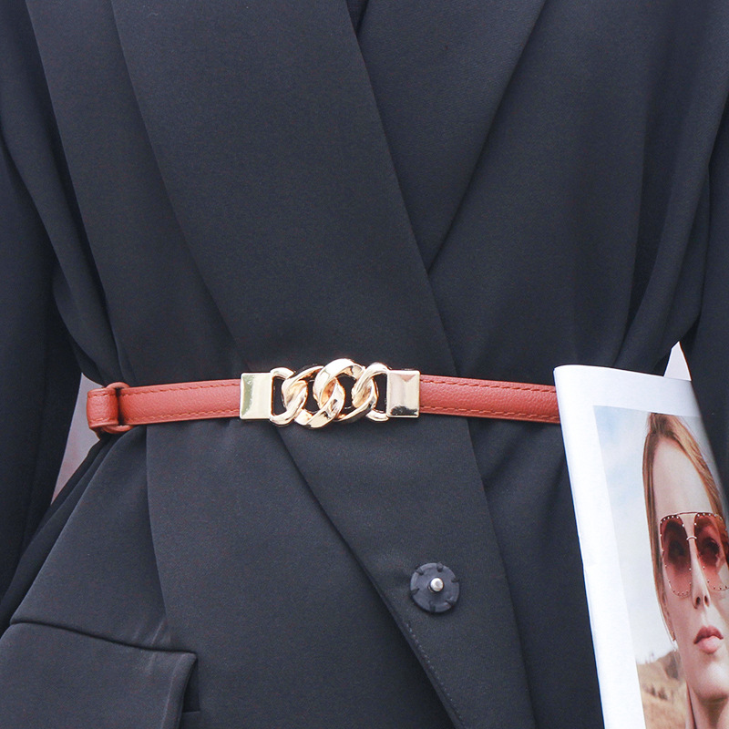 Chain Buckle Adjustable Thin Belt Women’s Dress Decorative Belt Simple Skirt Belt With Suit Shirt Waist Chain