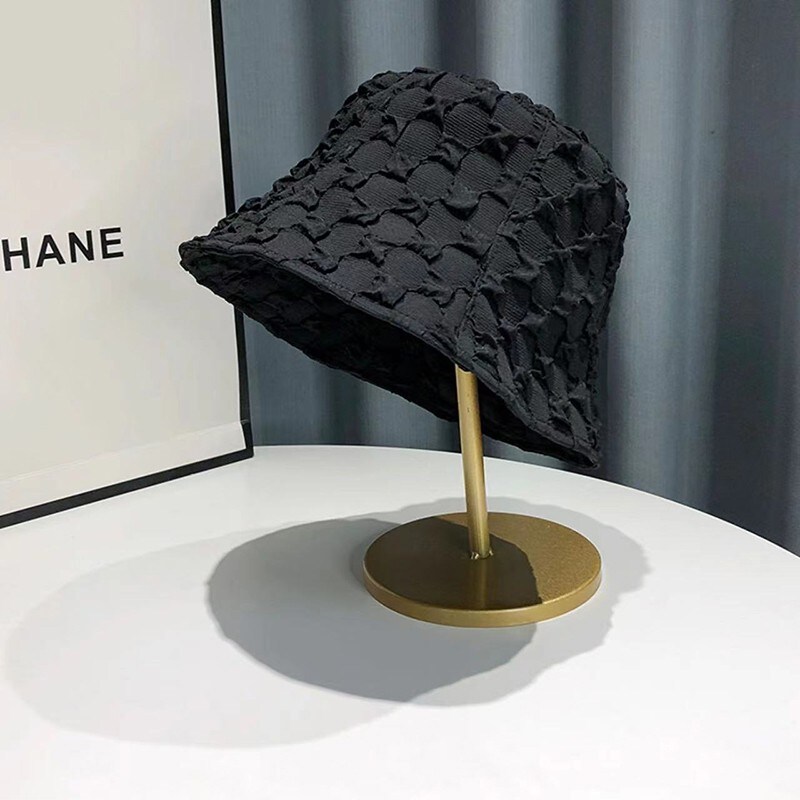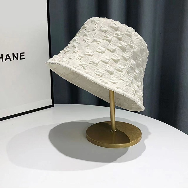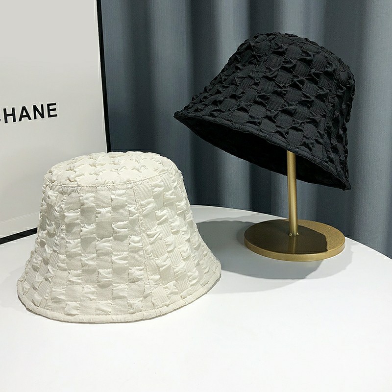Fashion Bucket Hat For Women Pleated Bubble Plaid Fisherman Hats Summer Casual Female Girl Outdoor Sunscreen Cap