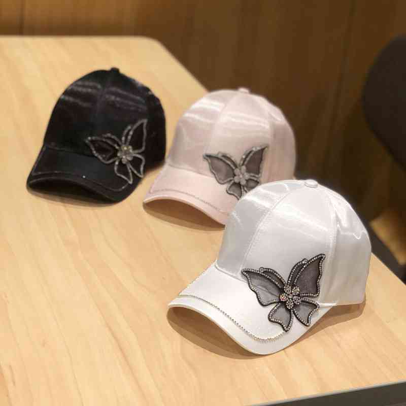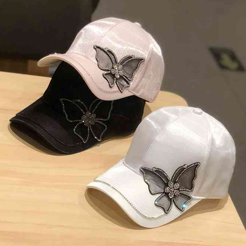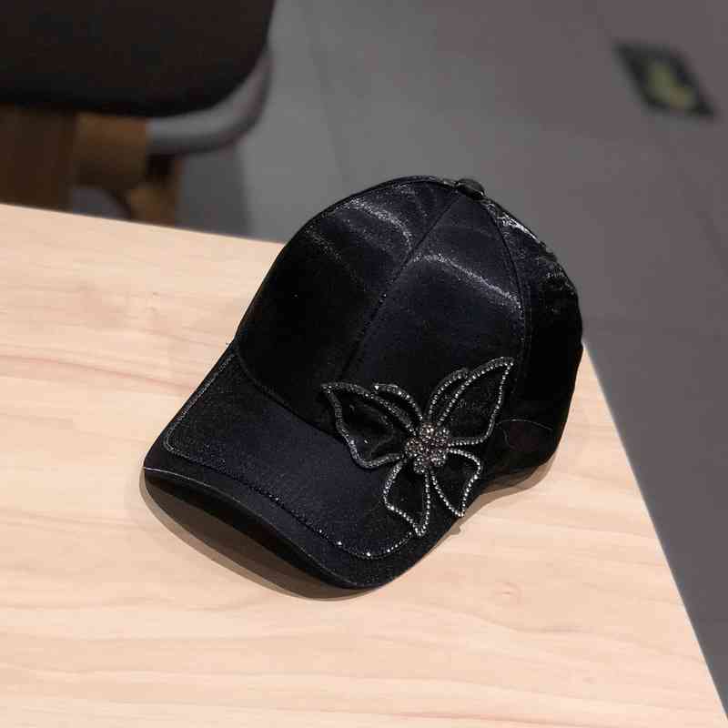 Fashion Butterfly Rhinestone Baseball Cap Women Summer Silk Satin Visor Sun Hat Leisure Adjustable Lady Snapback Caps