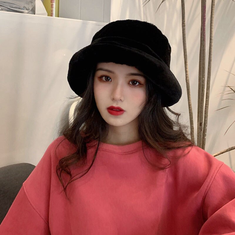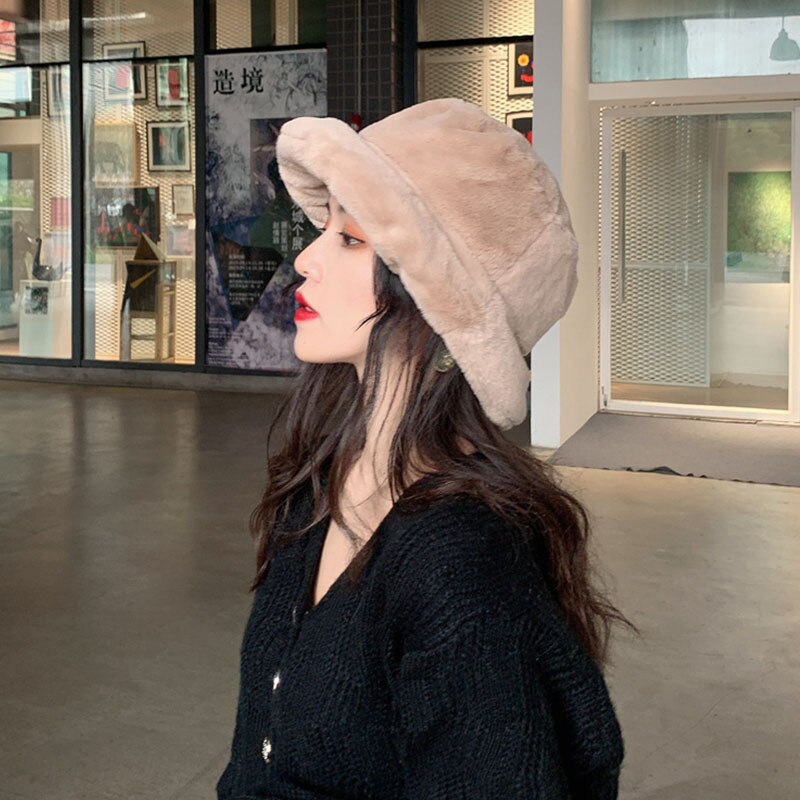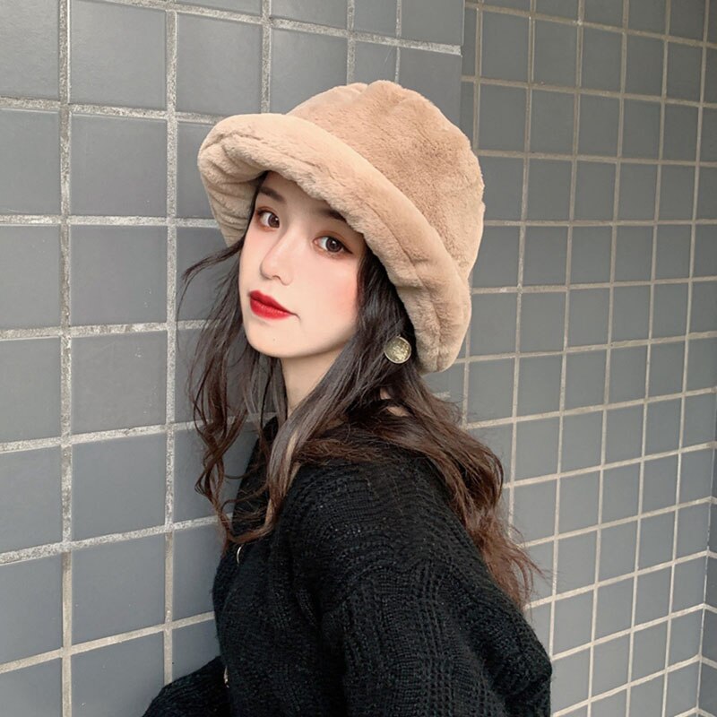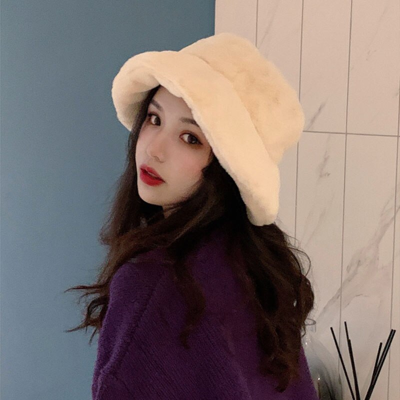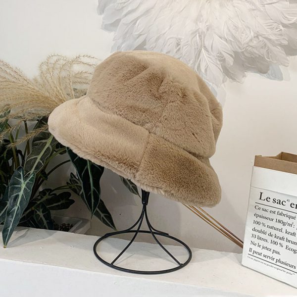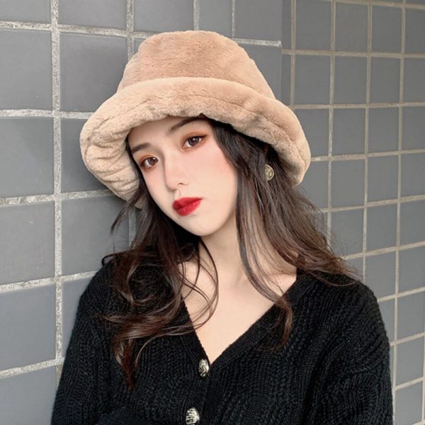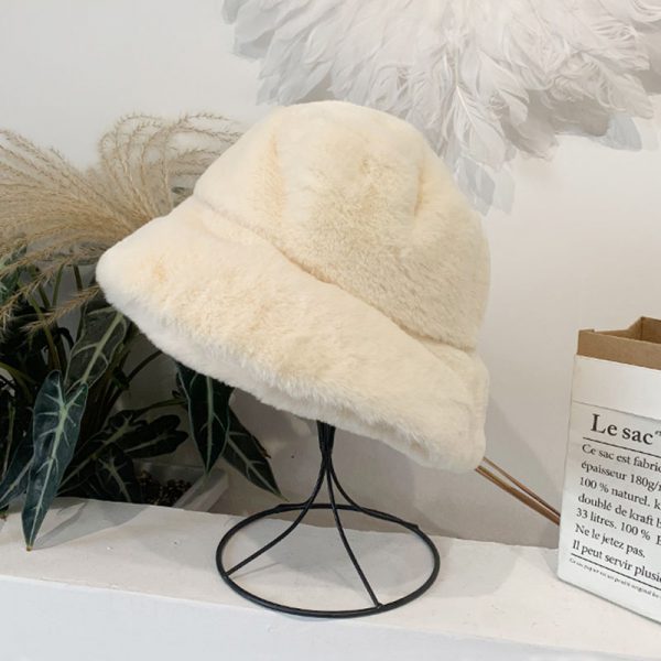 Fashion Faux Fur Winter Bucket Hat For Women Thickened Soft Warm Panama Cap Girls Solid Outdoor Vacation Hat Cap