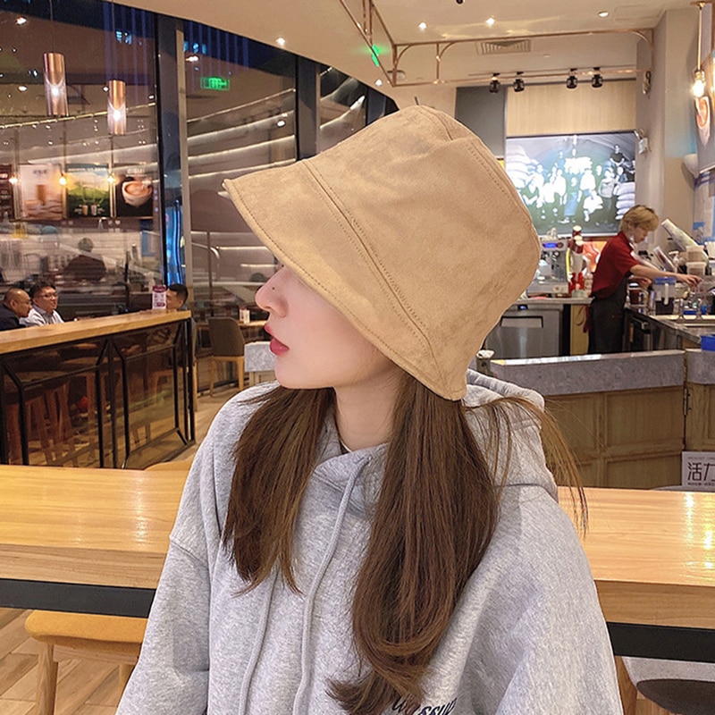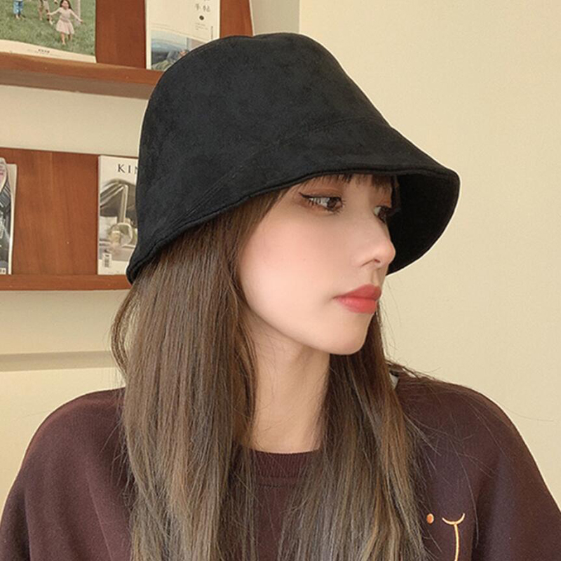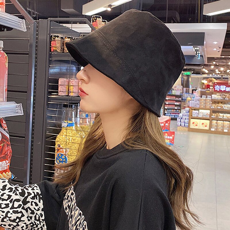 Fashion Suede Bucket Hats For Women Irregular Flat Top Panama Hat Solid Color Female Outdoor Travel Sun Cap
