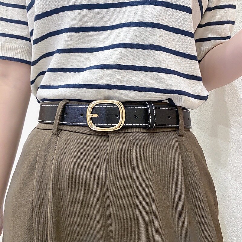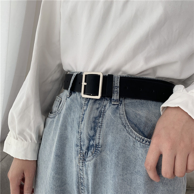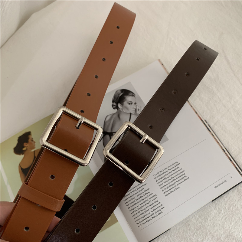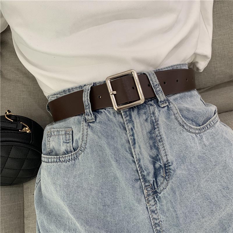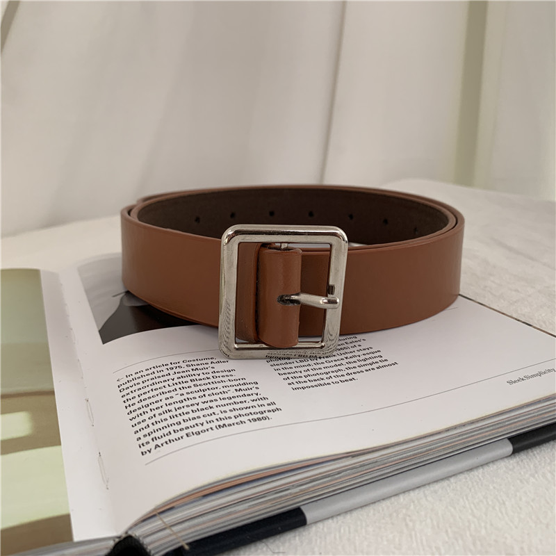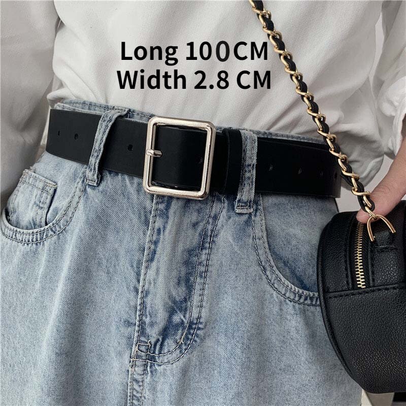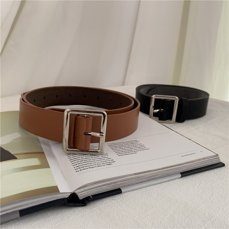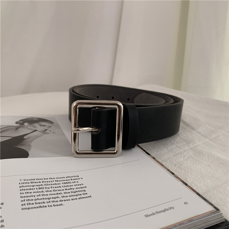 Leather Belt For Women Square Buckle Pin Buckle Jeans Black Belt Chic Luxury Brand Ladies Vintage Strap Female Waistband
