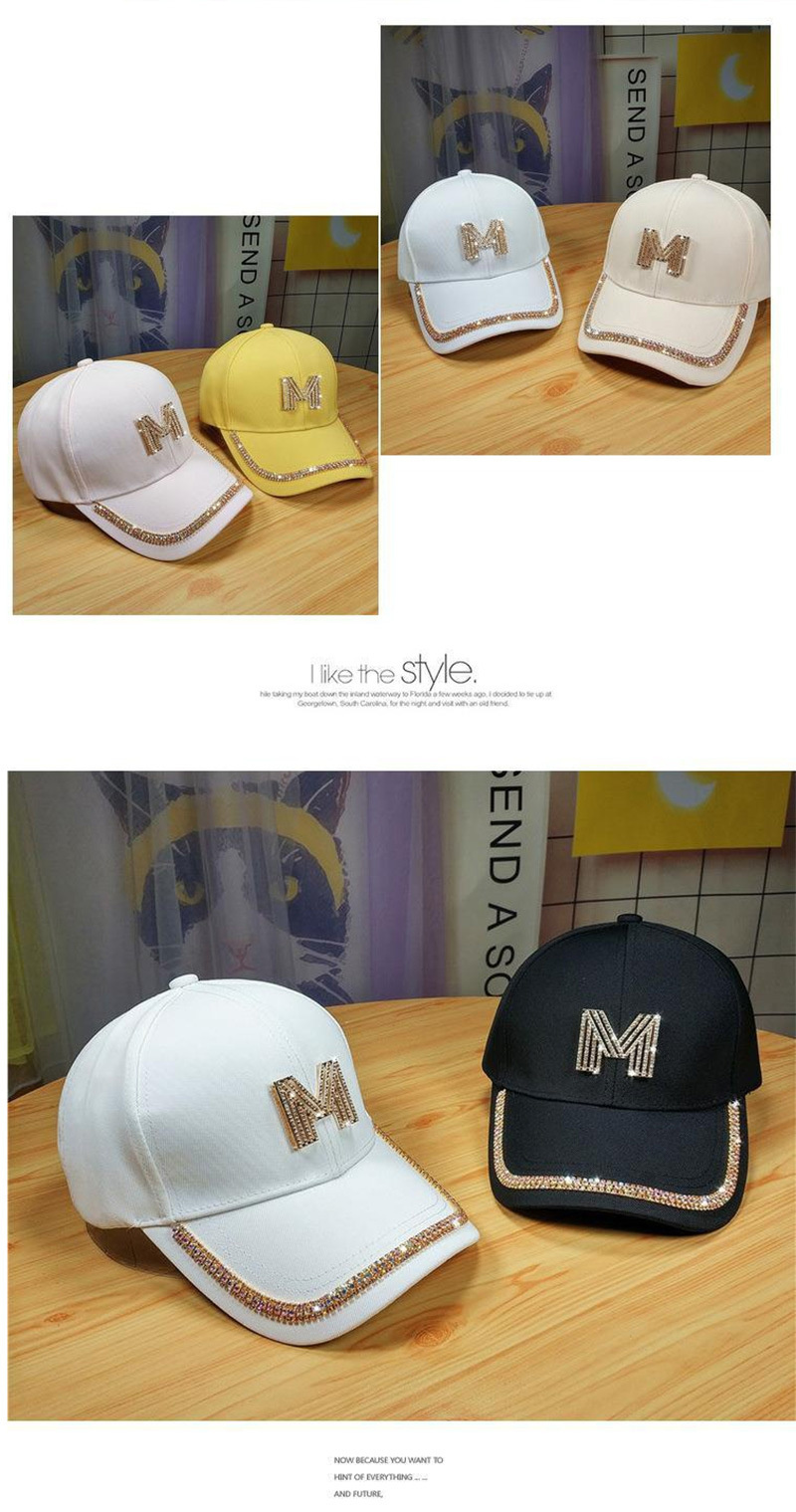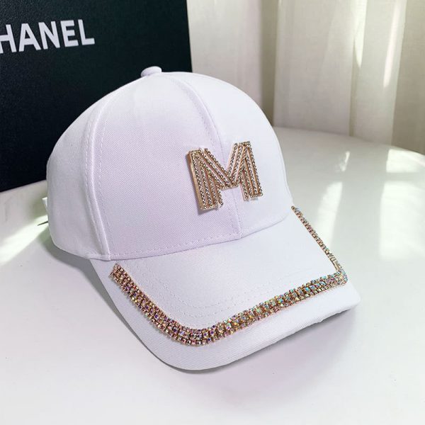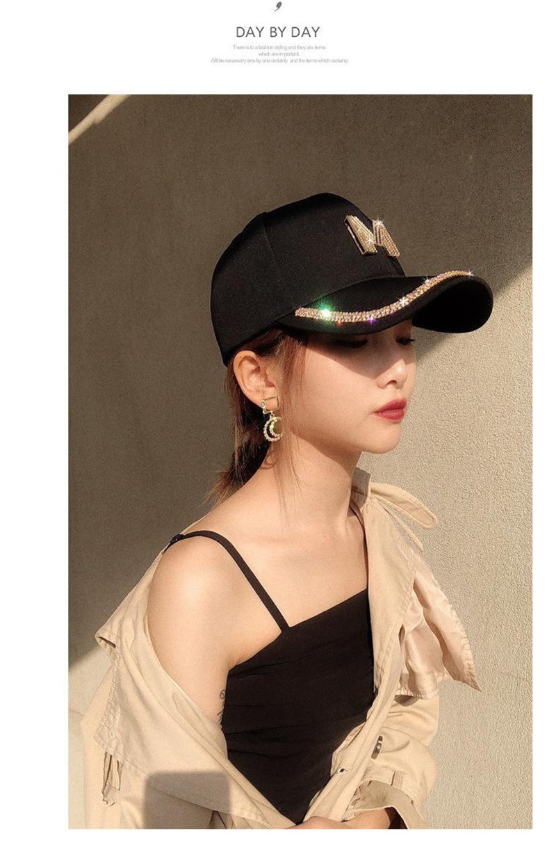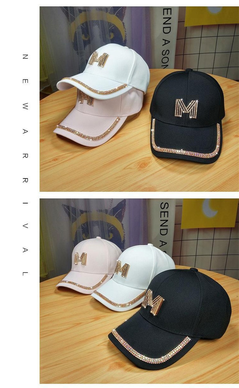 Letter M Women’s Bling Baseball Cap Ladies Fashion Caps With Rhinestones Snapback Hip Hop Hats Black White