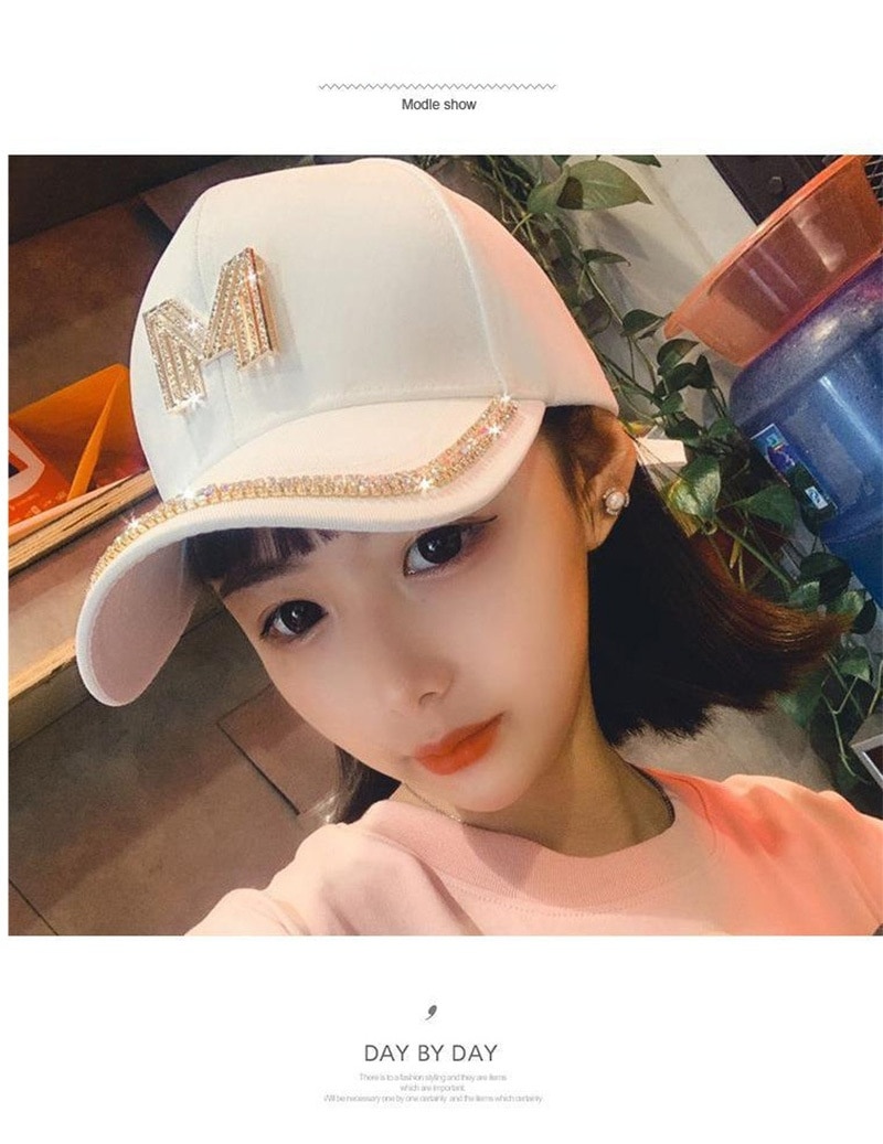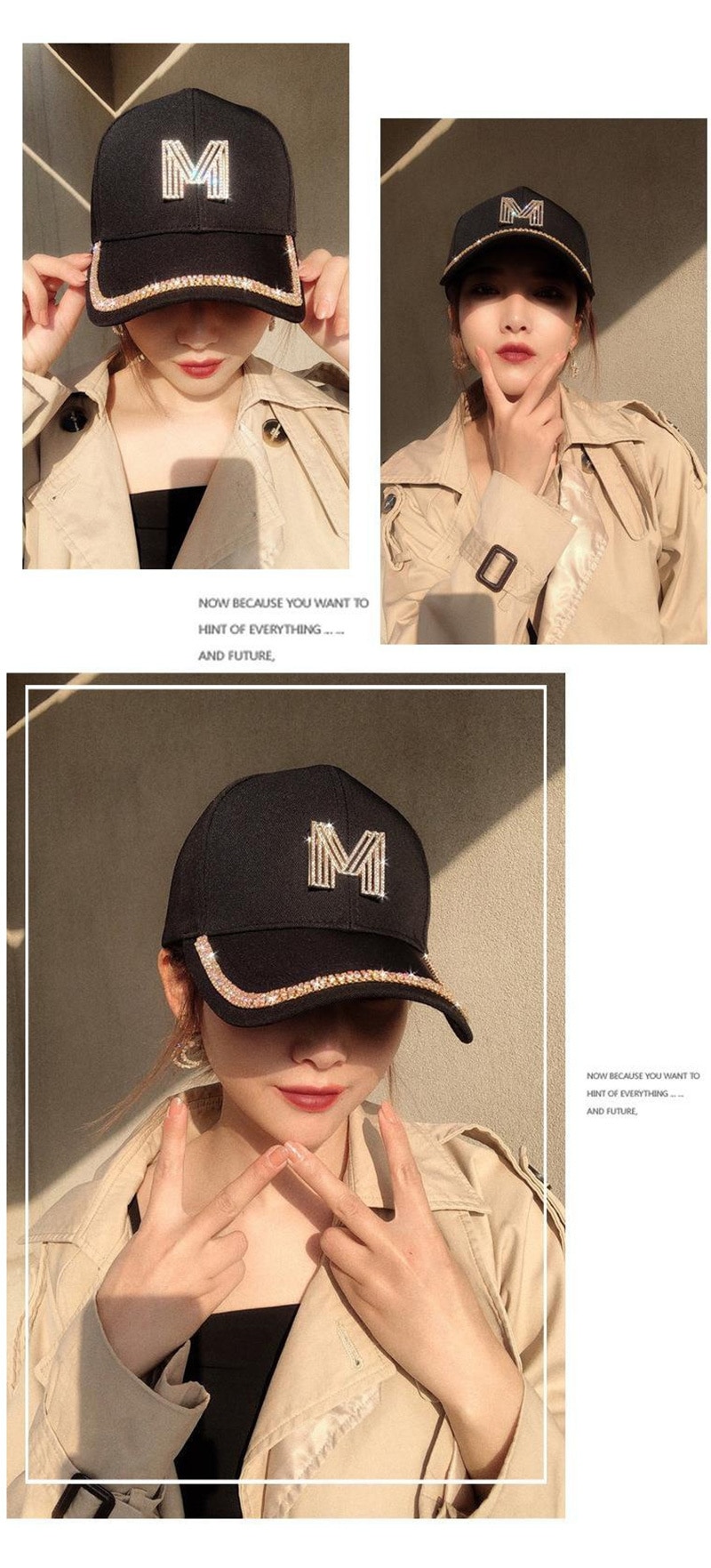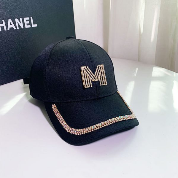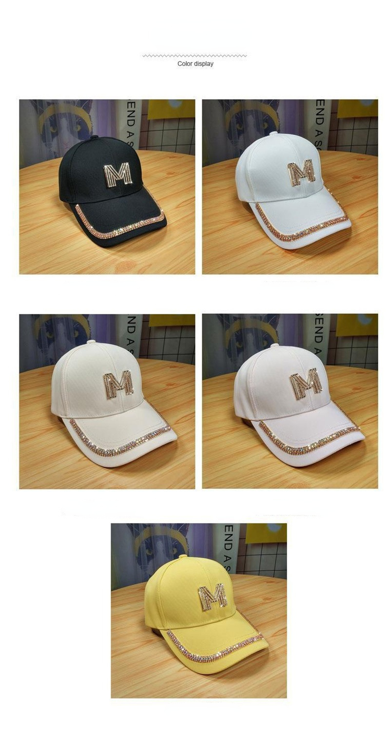 Letter M Women’s Bling Baseball Cap Ladies Fashion Caps With Rhinestones Snapback Hip Hop Hats Black White