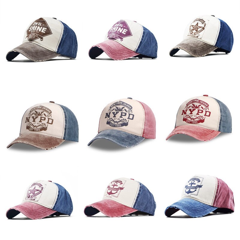 Patchwork Baseball Cap Women Summer Denim Hats Men Spring Printed Baseball Hats Cotton Outdoor Vintage Hole Visor Casual Cap