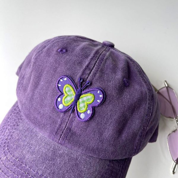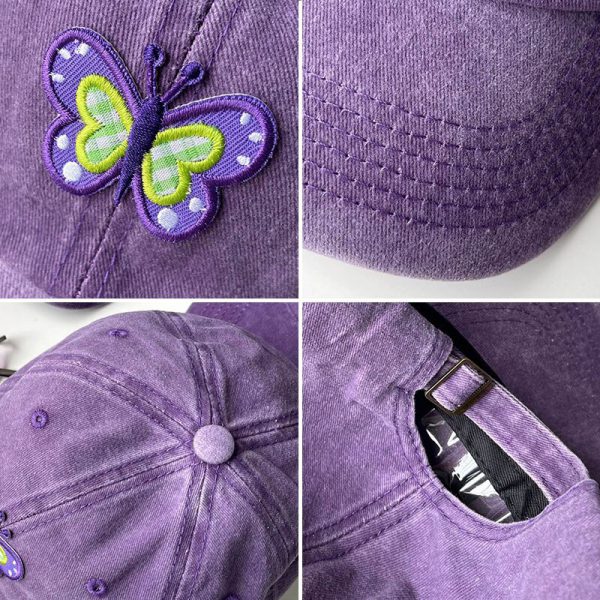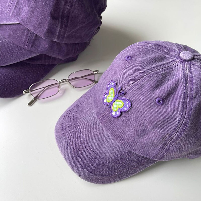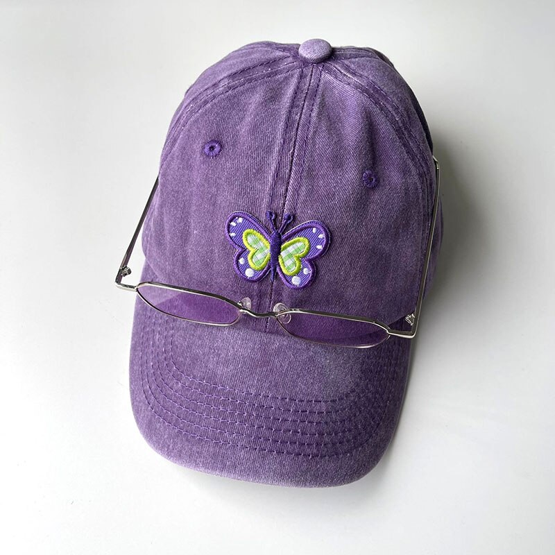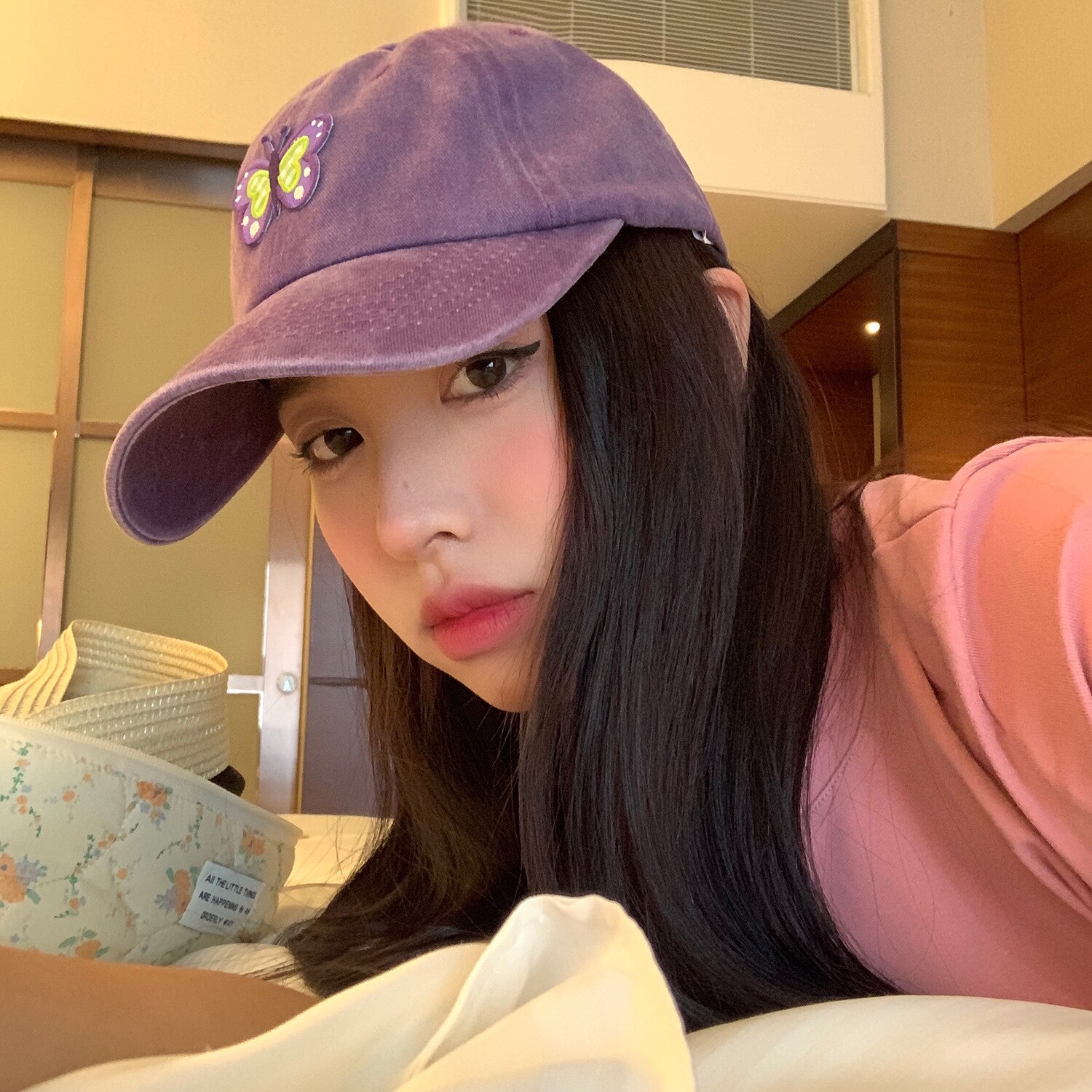 Retro Korean Purple Butterfly Women Baseball Hat Soft Cotton Snapback Sun Visors Cap Fashion Kpop Egirl Adjustable Peaked Caps