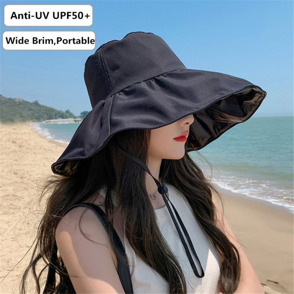 Summer Anti-uv Bucket Hat Women Men Wide Brim Beach Sun Hat Sunscreen Panama Hat Outdoor Foldable Portable Fisherman Cap