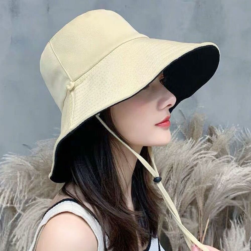 Summer Women Double-sided Bucket Hats Fashion Big Brim Foldable Solid Sun Hat Outdoor Beach Visor Caps Fisherman Cap For Travel