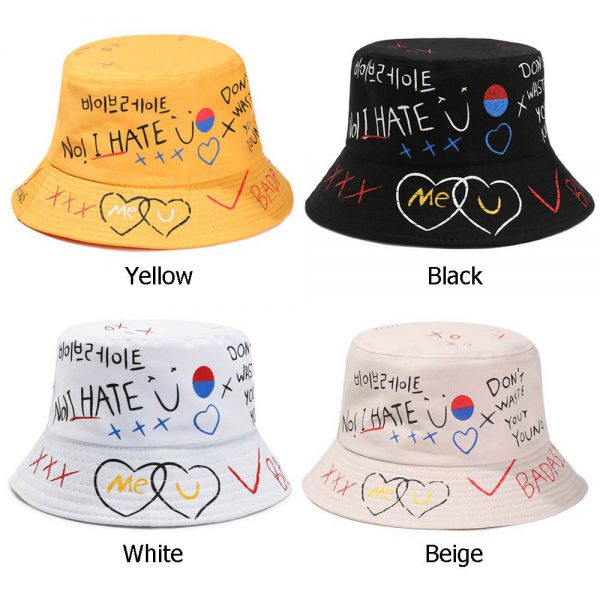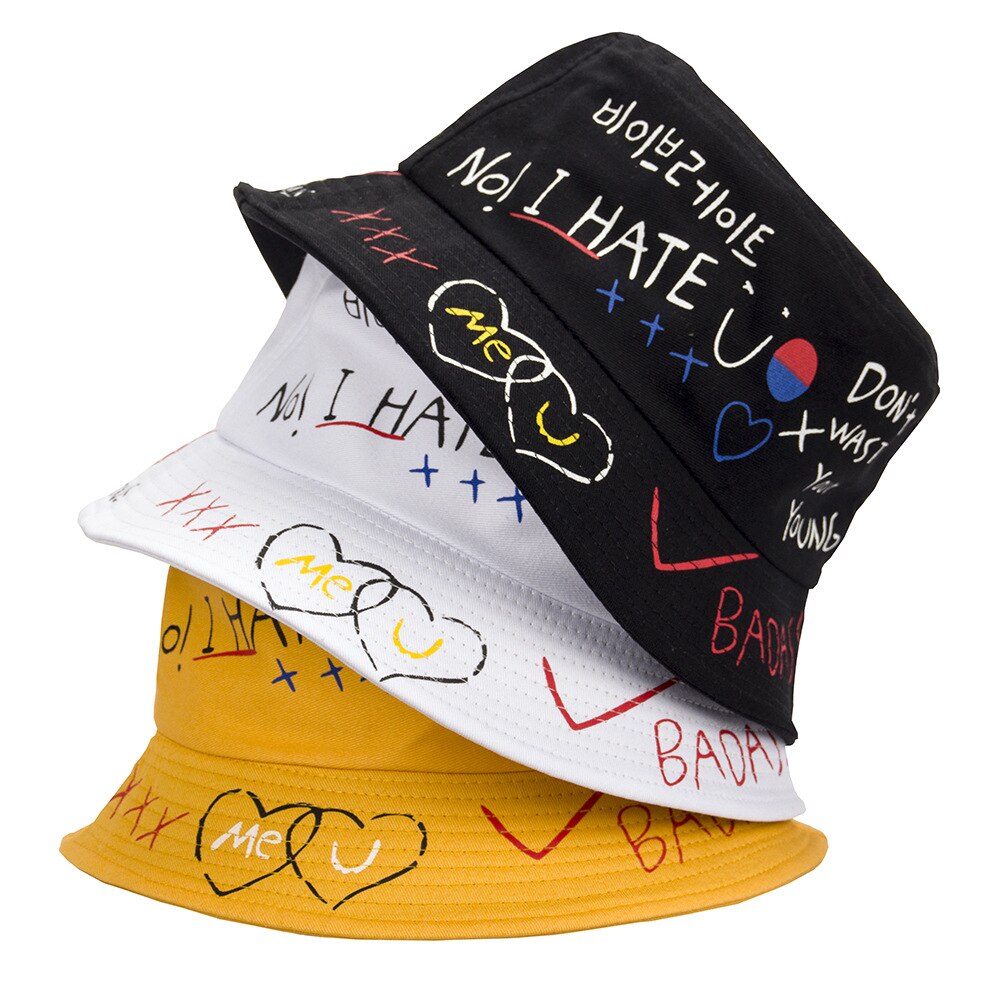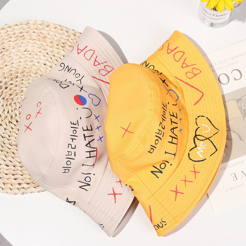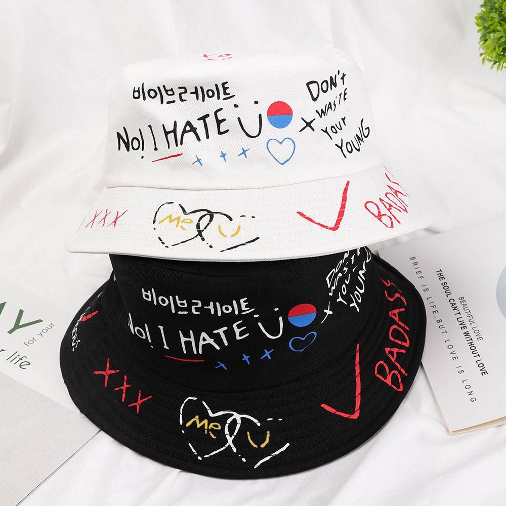 Unisex Harajuku Bucket Hat Graffiti Women’s Letter Men Fisherman Hat Summer Fishing Outdoor Panama Hip Hop Bob Cap Couples Gif Ts