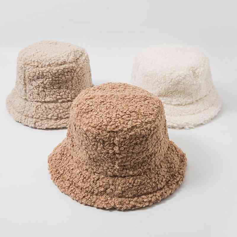 Women Faux Fur Bucket Hat Solid Artificial Fur Warm Cap Winter Female Outdoor Sunscreen Sun Hats Panama Lady Caps