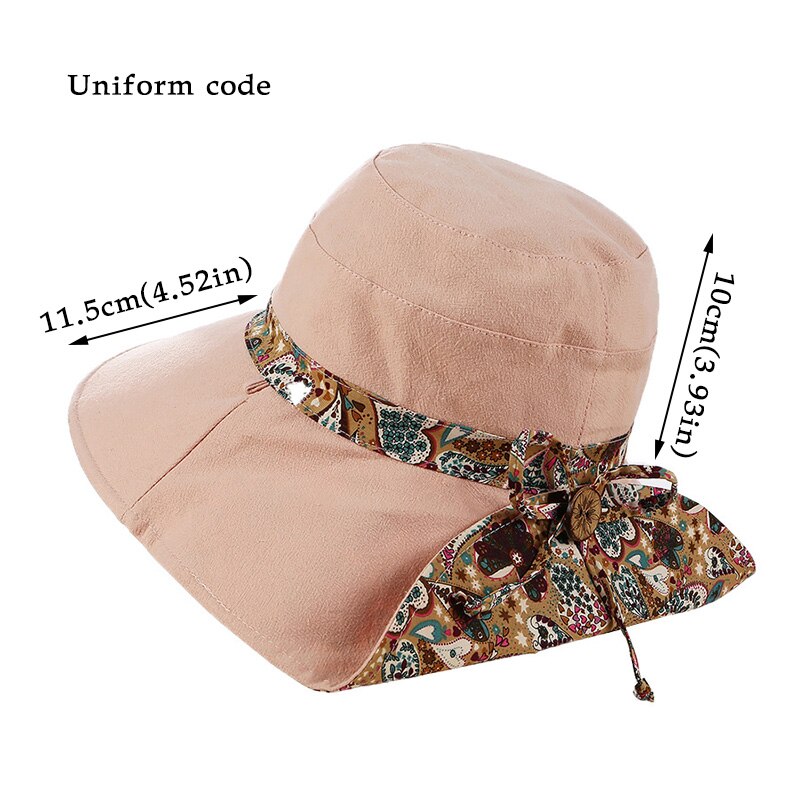Women Folding Bucket Hat Summer Cotton Big Brim Sun Protection Cap Female Beach Outdoor Double-sided Fisherman Hat