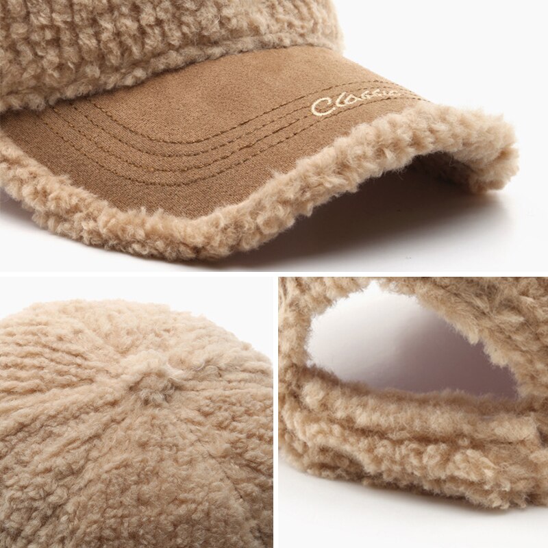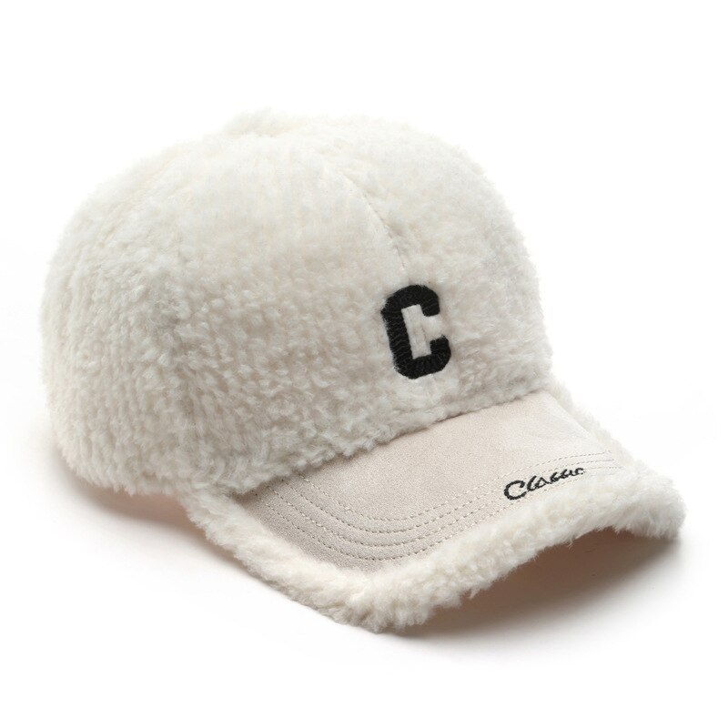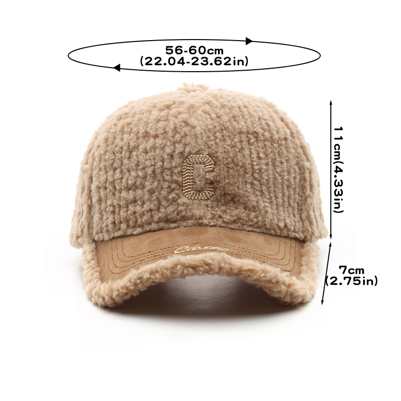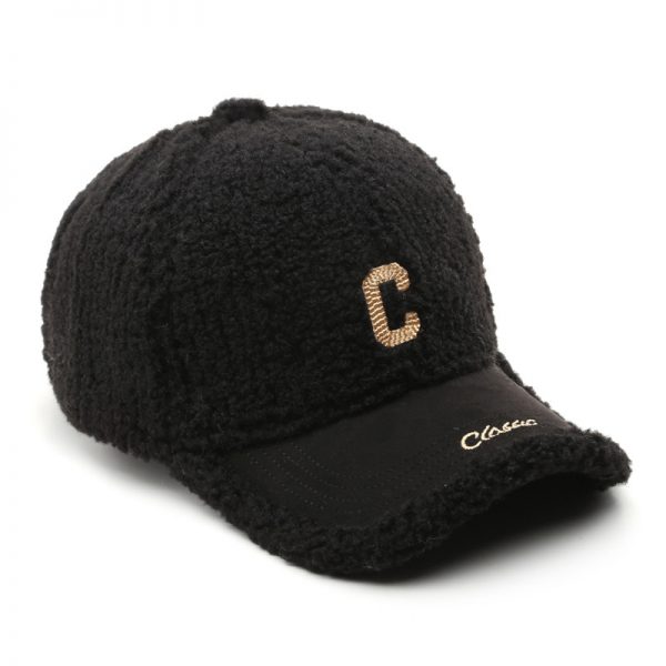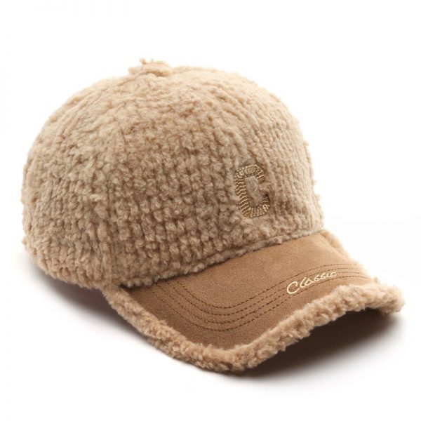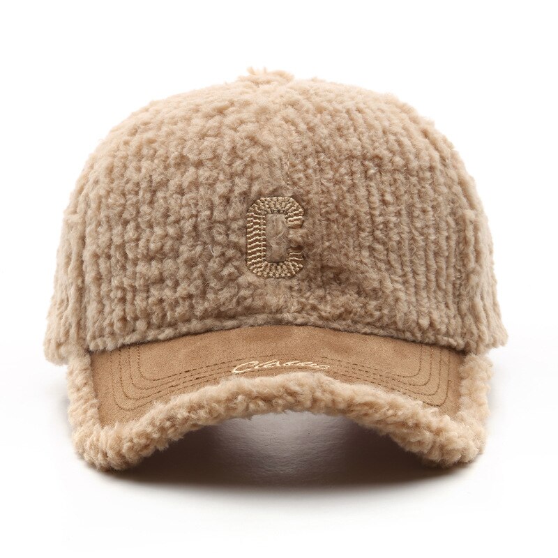 Women’s Winter Thicken Warm Windproof Baseball Cap Soft Plush Letter Embroidery Adjustble Hat Unisex Outdoor Sports Hip Hop Caps